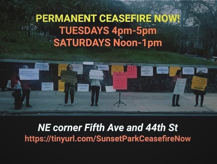 ๐ต๐ธ Sunset Park Ceasefire Vigil โ WEEKLY Tuesdays & Saturdays
